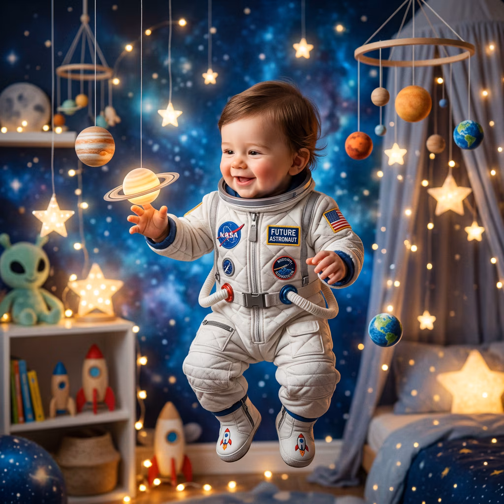 Start from a matching prompt, personalize the baby details, then generate and refine the result until the portrait fits your scene.